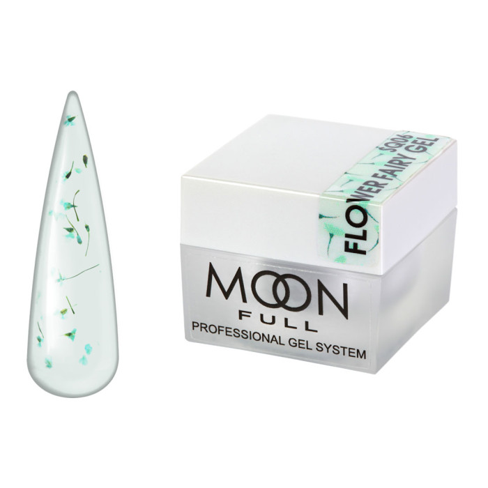 Moon Full Flower Fairy Gel — это дыхание свежести в вашем маникюре. Голубовато-зелёные сухоцветы в молочной прозрачной основе напоминают утреннюю росу на траве или отблеск морских волн. С этим оттенком дизайн выглядит лёгким и утончённым, создавая настроение гармонии с природой.