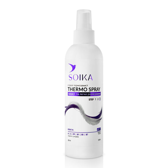 Я - спрей-термозащита Soika, созданный для ежедневного комфорта волос во время укладки. Моя формула сочетает защиту от тепла с эффектом лёгкого расчёсывания, помогая волосам оставаться послушными, мягкими и ухоженными без утяжеления.