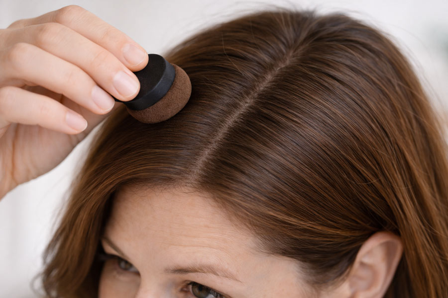 Щоб маскування виглядало природно, важливо правильно підібрати відтінок пудри відповідно до кольору волосся.