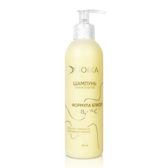 Волосся виглядає чистим, більш гладким і блискучим, легше розчісується та має доглянутий вигляд без відчуття сухості. Шампунь-реконструктор Soika "Формула блиску" допомагає створити базу для подальшого ефективного догляду та сяйва волосся.